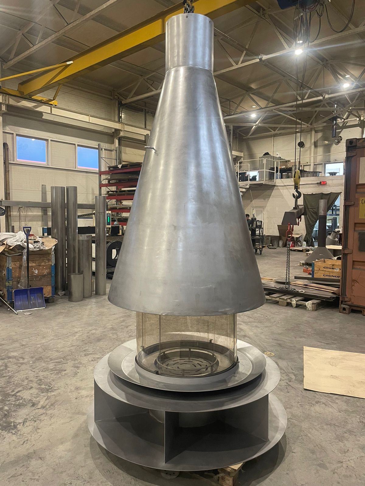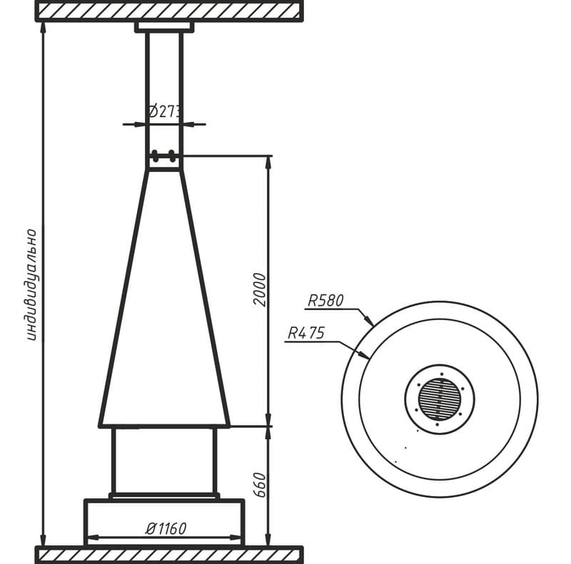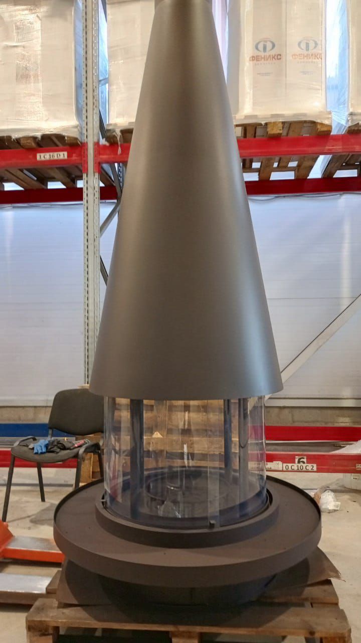 Корпус в форме конуса оснащен топкой с радиусными керамическими стеклами, два из которых фиксированы, а два – подвижные, благодаря чему обеспечивается комфортная эксплуатация. которая позволяет наслаждаться игрой пламени из любой точки в Вашего каминного зала.