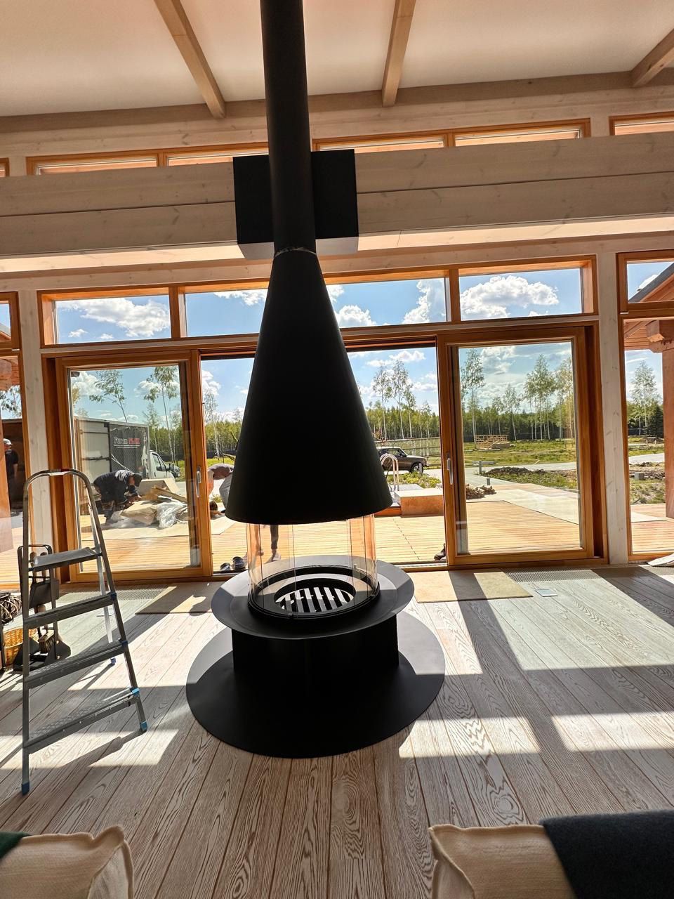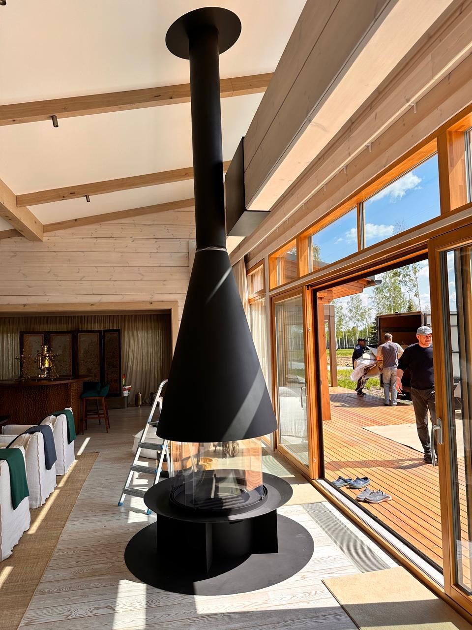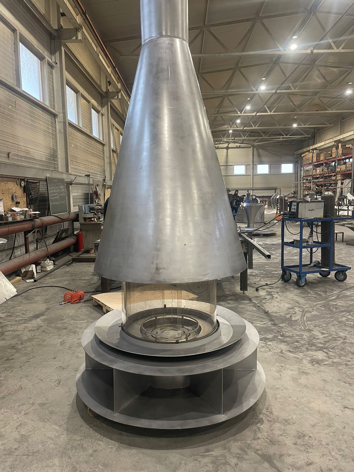 Корпус в форме конуса оснащен топкой с радиусными керамическими стеклами, два из которых фиксированы, а два – подвижные, благодаря чему обеспечивается комфортная эксплуатация. которая позволяет наслаждаться игрой пламени из любой точки в Вашего каминного зала.