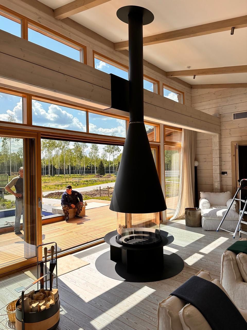 Центральный камин, выполненный в достаточно сдержанном современном, но изысканном стиле, прекрасно дополнит любой дизайн.