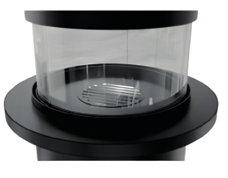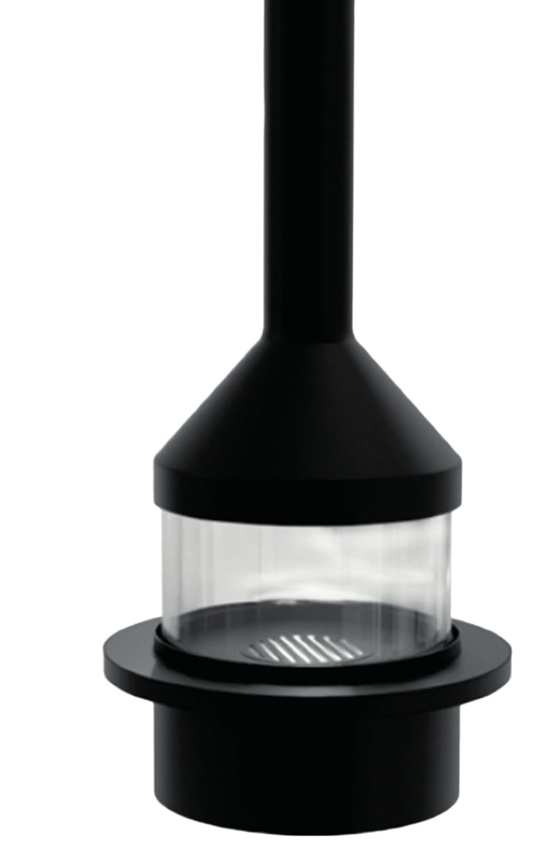 Выполненный из металла и оборудованный четырьмя керамическими жаропрочными стеклами. Остекленный купол и основание камина при установке образуют полусферу, а как